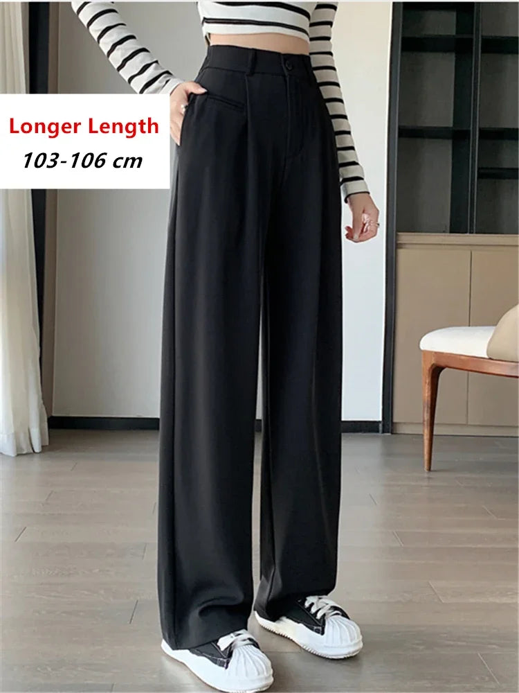 2024 Spring Summer Women’s High Waist Wide Leg Pants – Elegant Minimalist Straight Loose Trousers with Button Detail