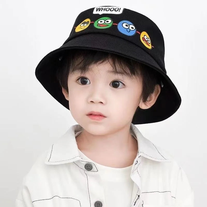 Korean Cute Cartoon Kids Bucket Hat – Boys & Girls Outdoor Sun Cap with Windproof Rope